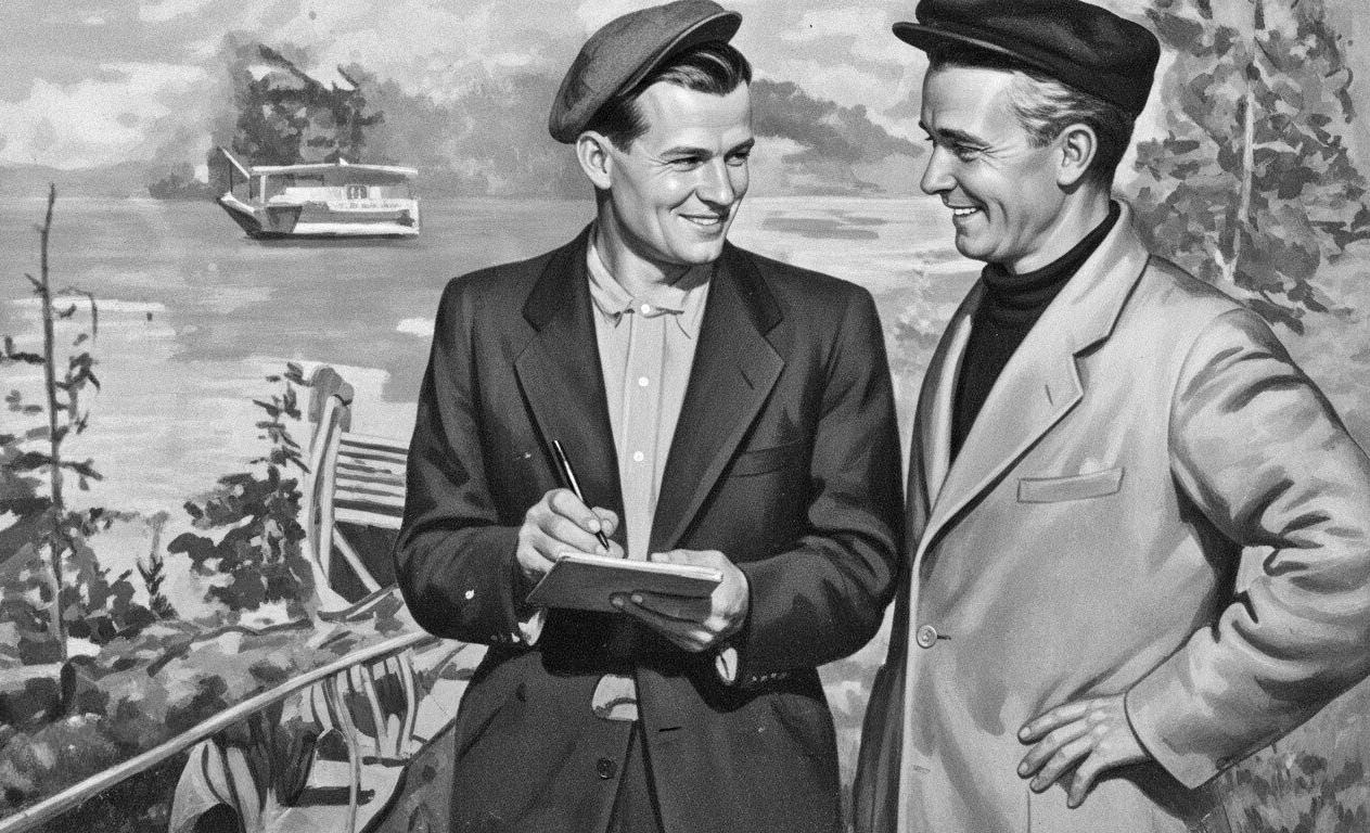 Начальник участка № 2 Б.Д. Плотников и начальник прибора № 20 А.Я. Моисеев. Прииск имени Гастелло. Фото из газеты «Советская Колыма».