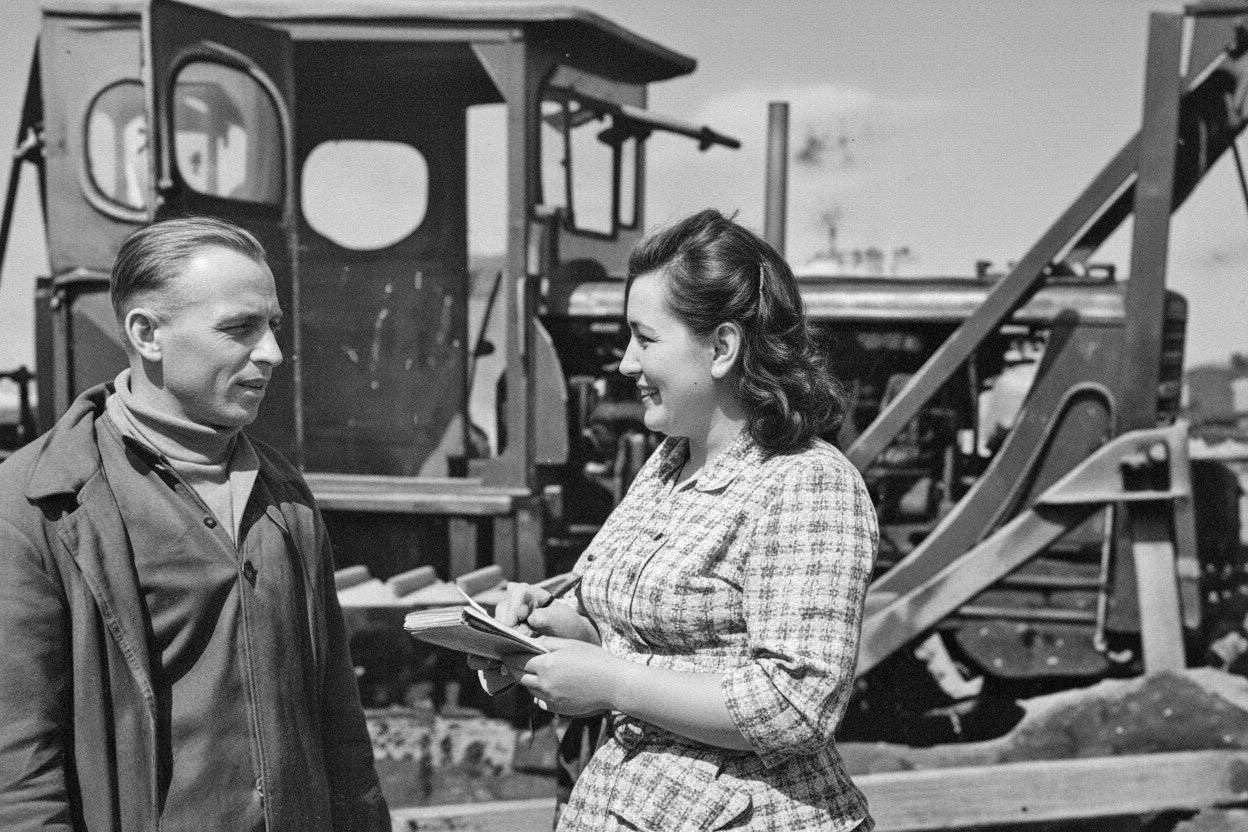 Прииск имени Гастелло. Бригадир бульдозера А.К. Богдан. Фото из газеты «Советская Колыма». 1948 год.