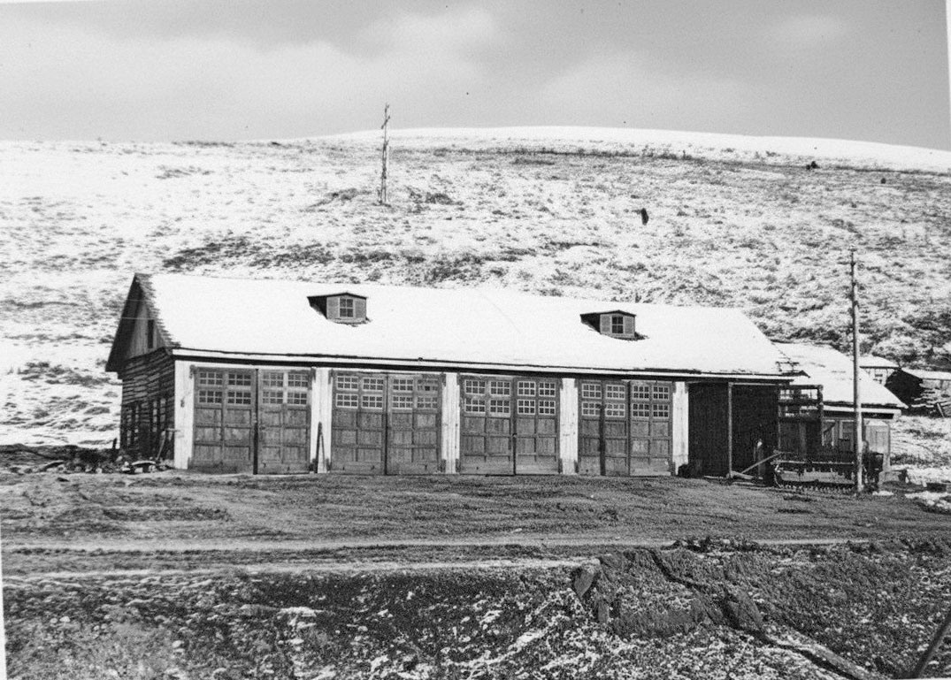 Здание бульдозерного парка прииска им. Гастелло ТГПУ. 1951 год. Фото из архивов МОКМ.