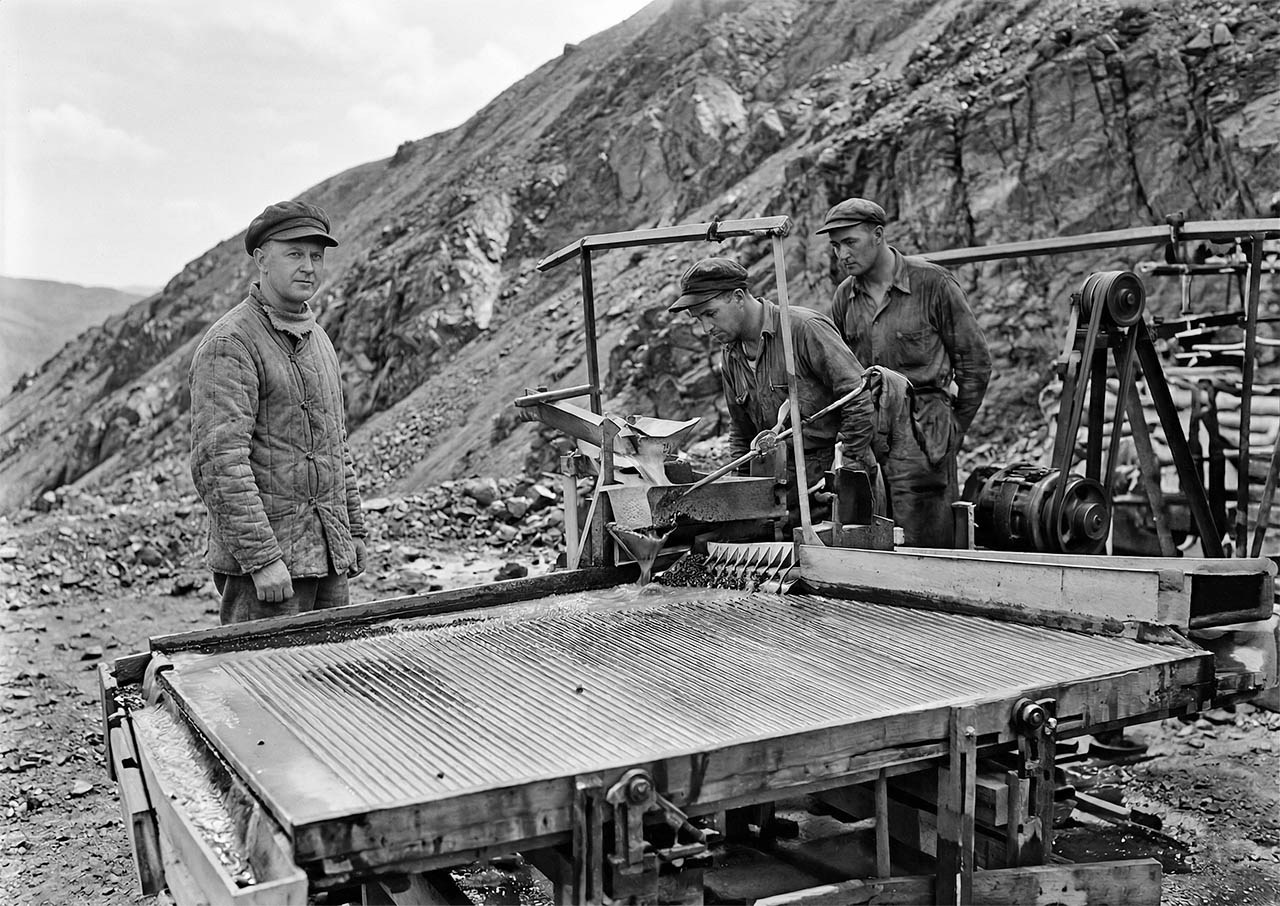 Промывка касситерита на столе Вильфея. Рудник «Бутугычаг». 1940 год. Фото из газеты «Советская Колыма».